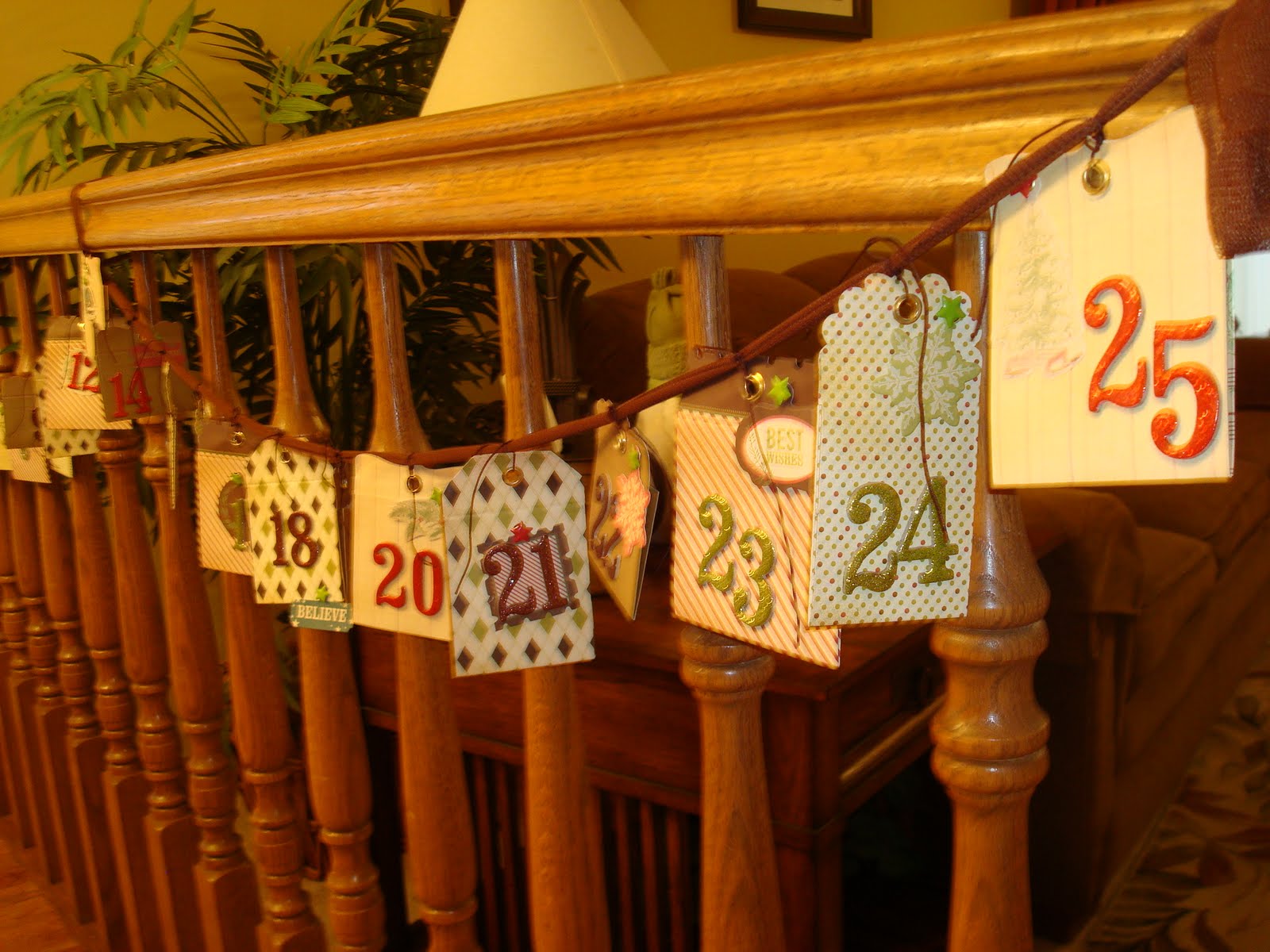 I've been counting the days down until I can start my December Daily Journal and tomorrow is the day. The last couple of days I've been so busy cleaning my house and decorating it so I have time to put a side for my journal. I also have been working on an advent calendar for my dd. I have adapted it from the one that Ali Edward shows on her website. Instead of cutting out squares I decided to buy a kit from Minds eye that uses envelopes and I also used Ali's December overlays in order to write out different activities for my daughter to do each day of December. Here's a sneak peak